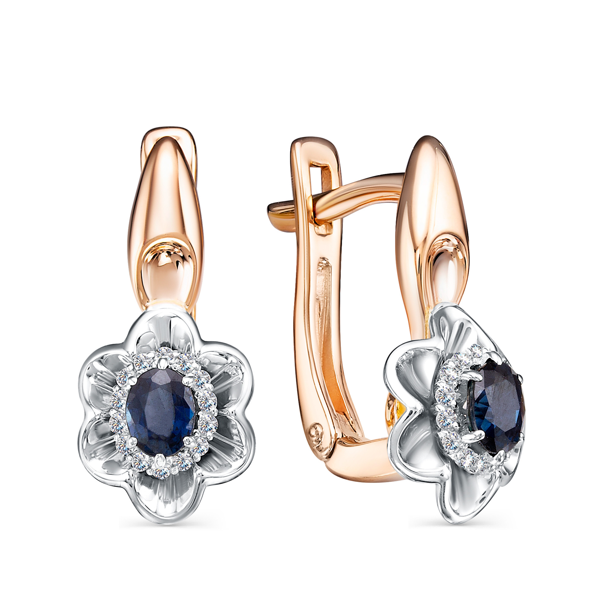 Серьги из красного золота с сапфиром и бриллиантами