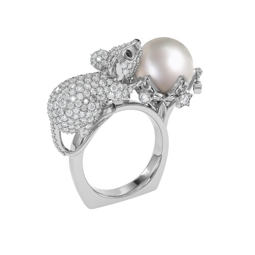 [ELEMENT_CHAIN] => Кольцо из белого золота с жемчугом и фианитами