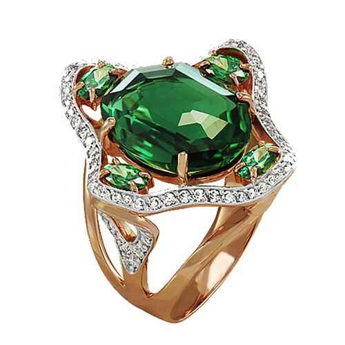 [NAME] => Кольцо из серебре с изумрудом и фианитами