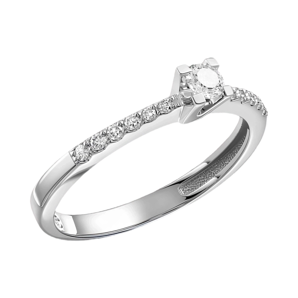 Кольцо помолвочное из белого золота с бриллиантами