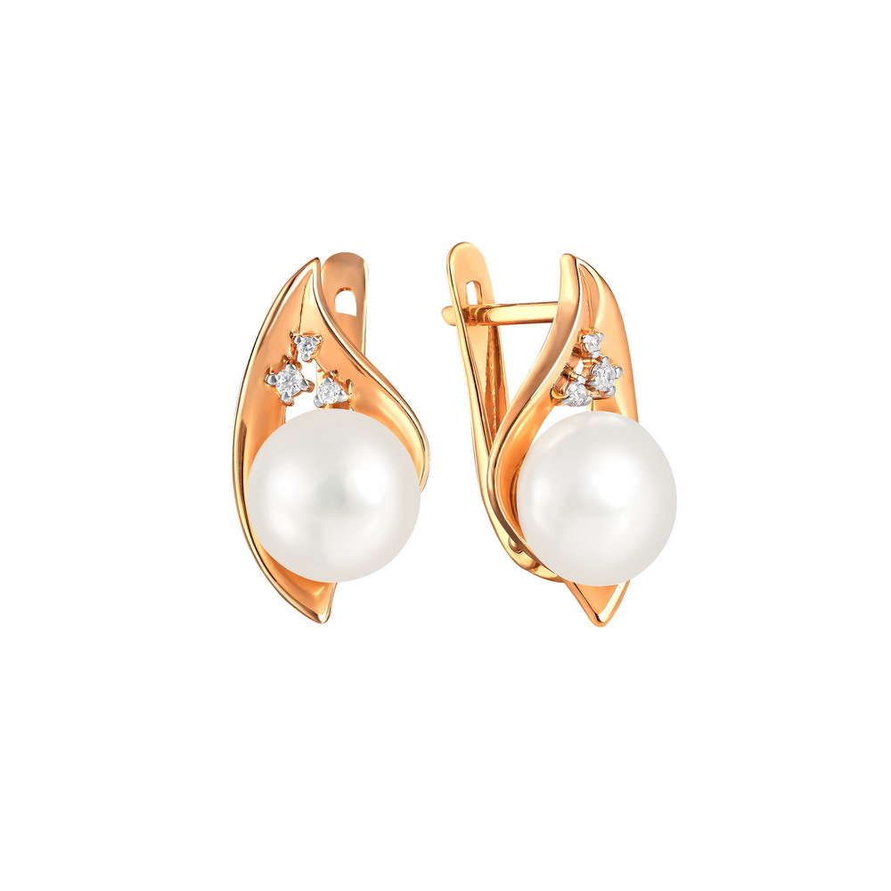 Серьги из красного золота с жемчугом и фианитами 030526
