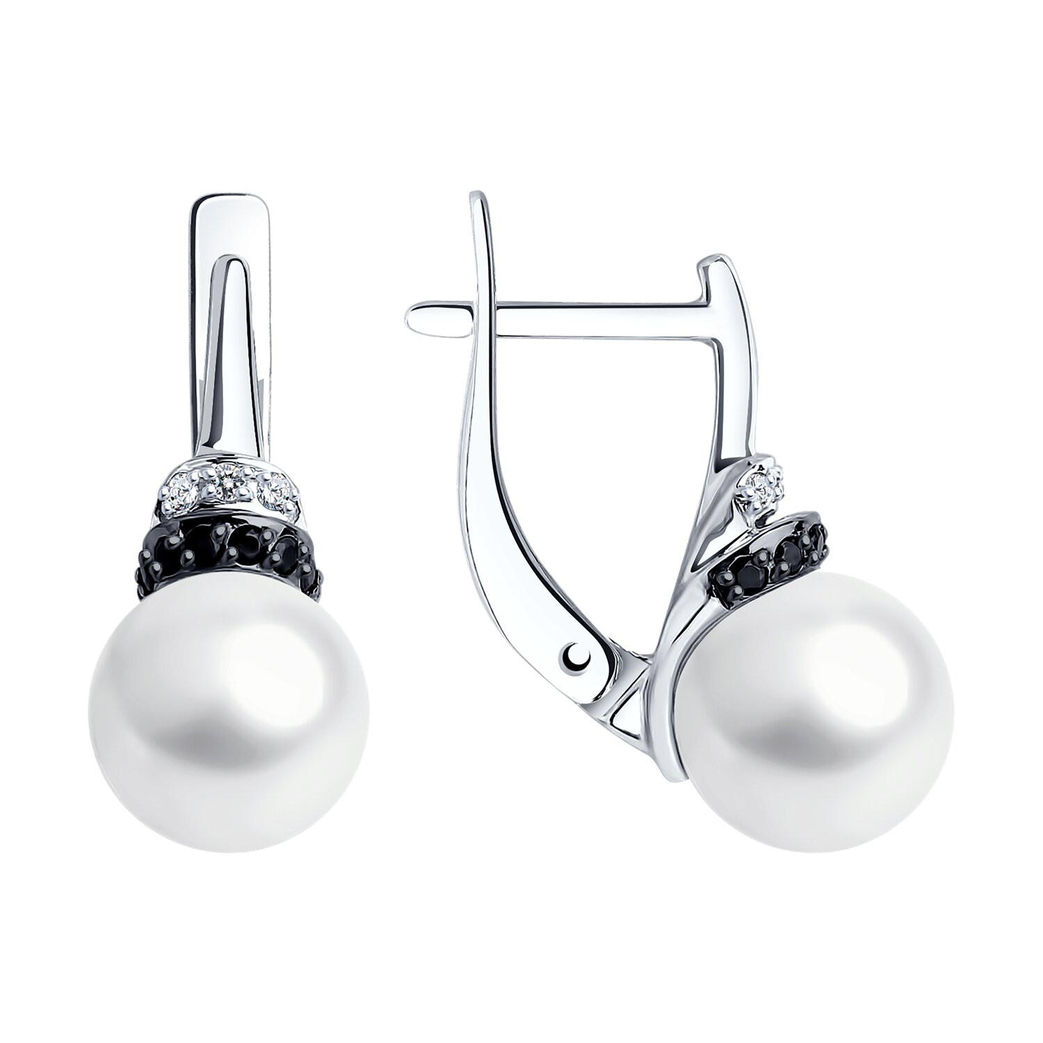 Серьги из белого золота с жемчугом и фианитами