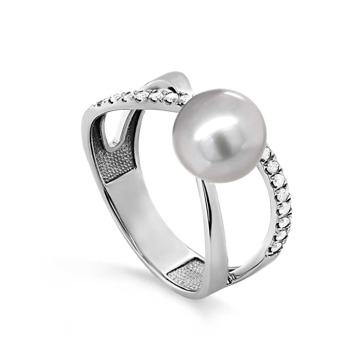 Кольцо из белого золота с бриллиантами и жемчугом 032547