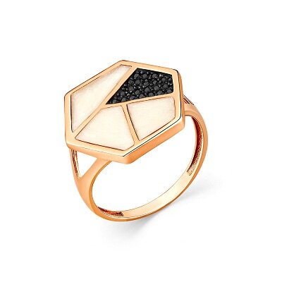 Кольцо из красного золота со шпинелями и эмалью 033621