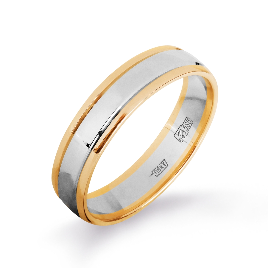 Оригинальное обручальное кольцо из двух цветов золота 585 пробы(мультицвет). Основание кольца выполнено из красного золота, а середина из белого золота. За счёт сочетания разных металлов и цветов колечко из двух видов золота смотрится лаконичным и завершенным.