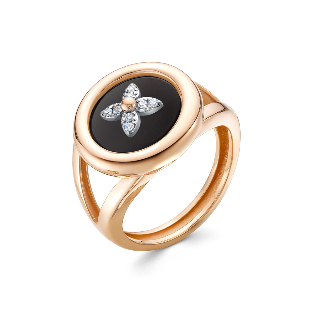 [NAME] => Кольцо из красного золота с ониксом и фианитами