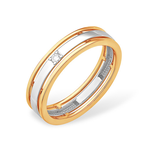 Обручальное кольцо из комбинированного золота с бриллиантом 035244