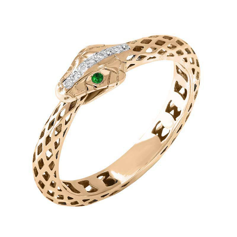 Кольцо в красном золоте с бриллиантами и изумрудами 040640