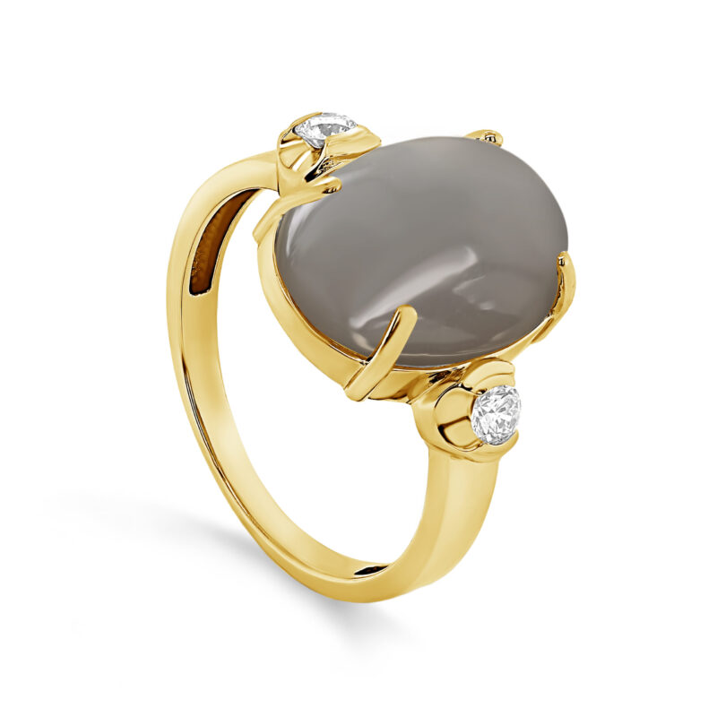 Кольцо из жёлтого золота с лунным камнем и бриллиантами