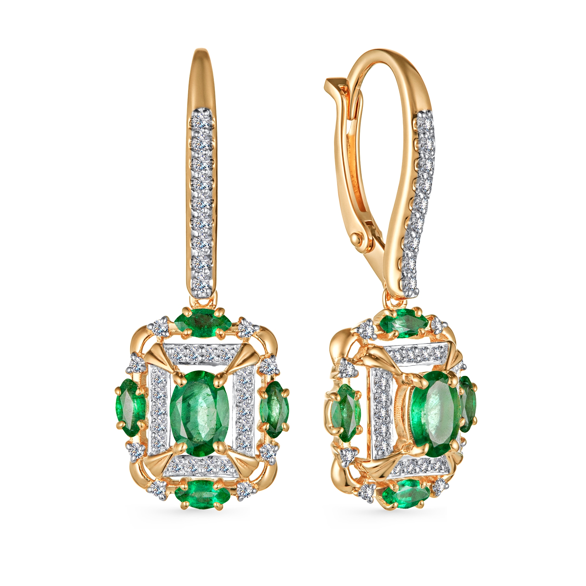 Серьги из жёлтого золота с изумрудами и бриллиантами