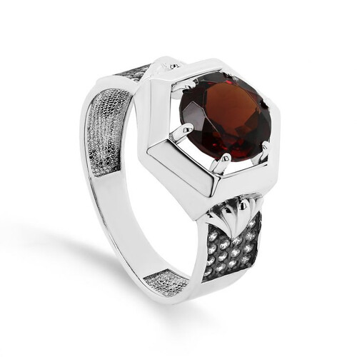Кольцо из серебра с ситаллом гранатовым и фианитами