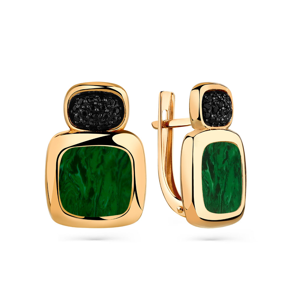 Серьги из красного золота с малахитом и фианитами