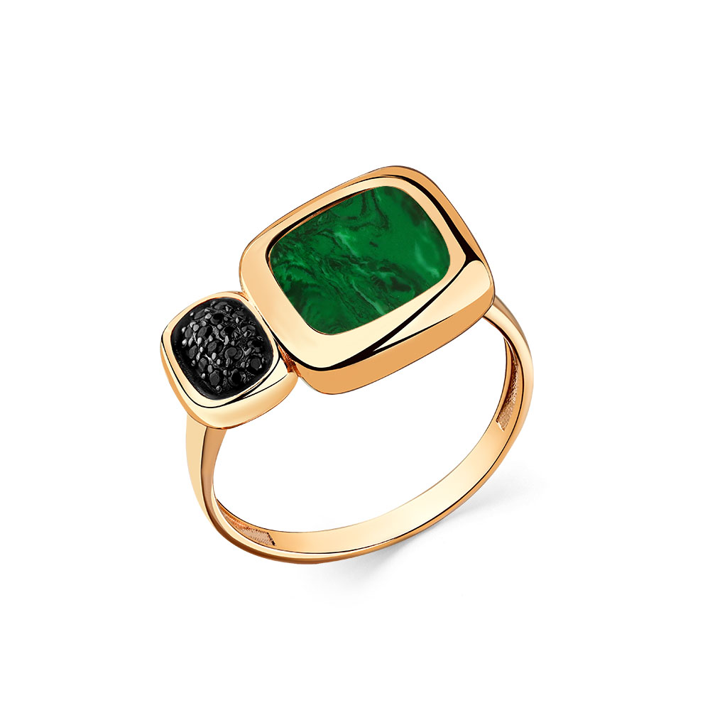 Кольцо из красного золота с малахитом и фианитами 082066