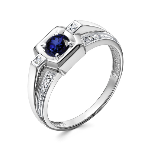 Печатка из белого золота с сапфиром и бриллиантами 083421