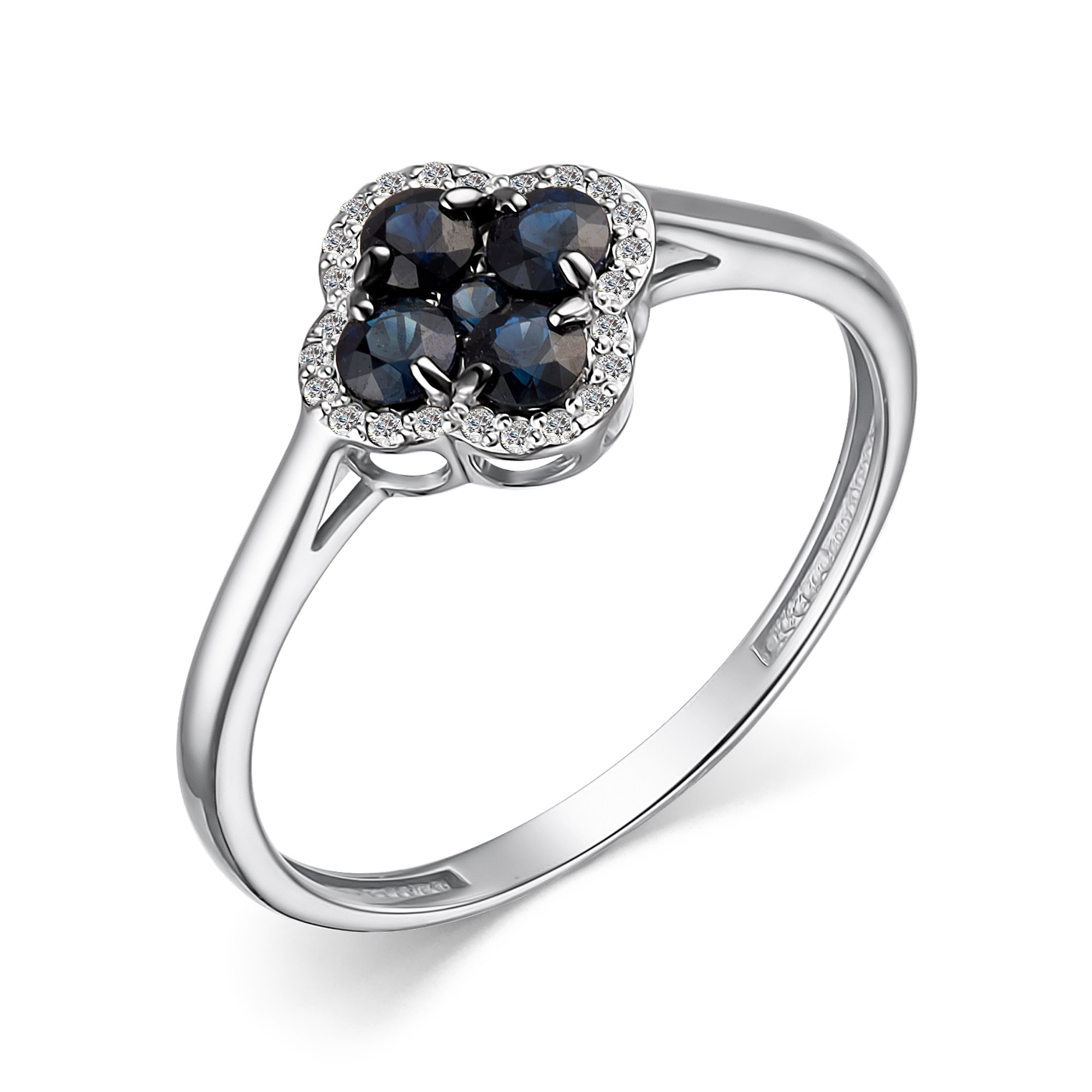 Кольцо из белого золота с сапфиром и бриллиантами 084913