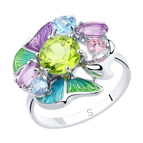 Кольцо из серебра с аметистом,топазом и фианитами 085377