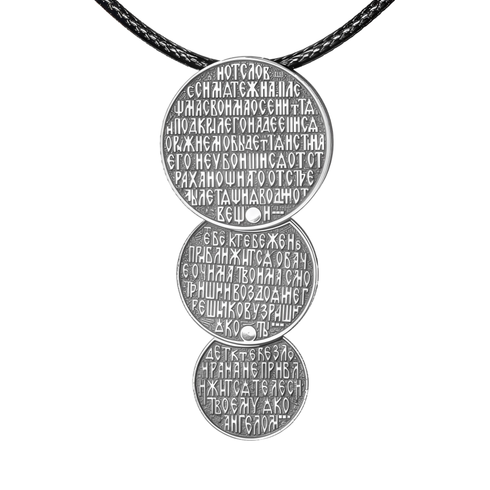 Мастера «Иордань» ответственно подошли к разработке необычной подвески, на которой помещен текст Псалма 90-ого. Изделие состоит из трех подвижных частей и за счет применения особой конструкции, элементы подвески могут складываться воедино и образовывать круг, который символизирует священный свет, являющийся защитой вместе с великой охранной молитвой. «Прибежище мое и защита моя, Бог мой, на Которого я уповаю». Бог с тобой и поэтому ничего не случится! Читаемый во всякой опасности, Псалом 90-ый вдохновляет преодолевать трудности с помощью Божьей. Молитва внушает огромную надежду на Господа Нашего и дает понимание того, что Бог всеми силами помогает и защищает. Вооружившись Псалмом 90-ым, человек не только не потерпит никакого зла, но и без всякого опасения шагнет навстречу неизведанному, ведь с ним будет благодать и защита Духа Святого.