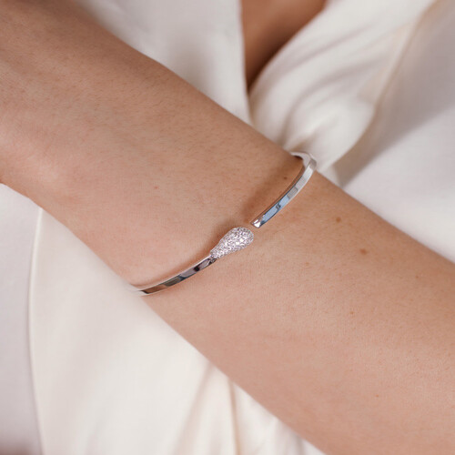 Браслет жёсткий из белого золота с фианитами