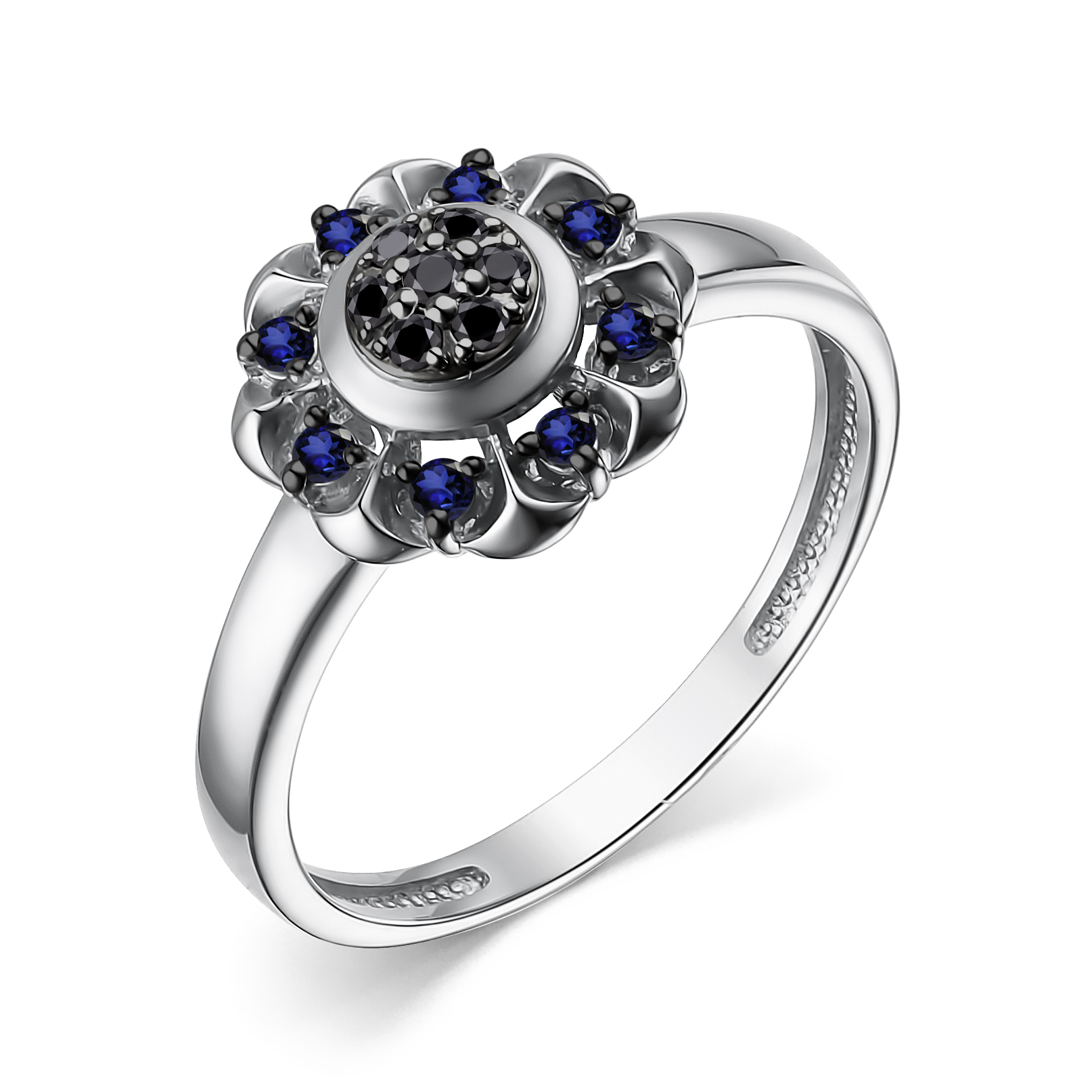 Кольцо из белого золота с сапфиром и бриллиантами 094944