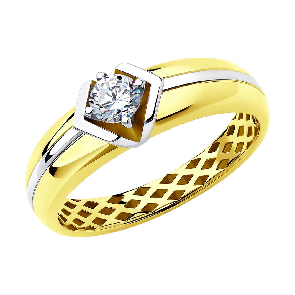 Кольцо помолвочное из желтого золота с фианитом 097867