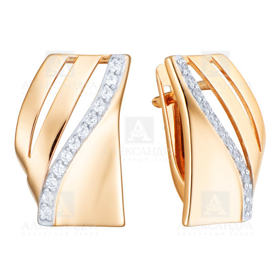 Серьги из красного золота с фианитами 103113
