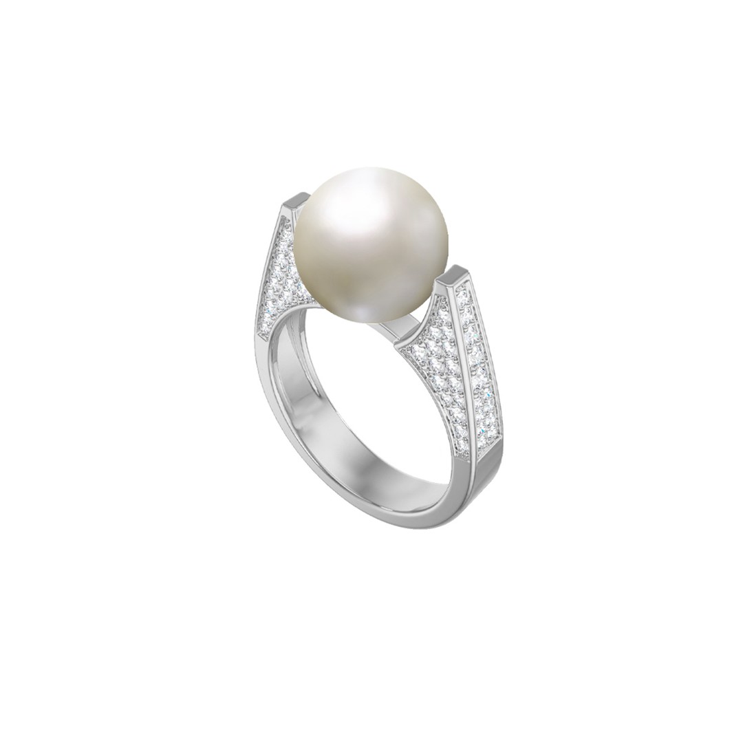Кольцо из серебра с жемчугом и фианитами