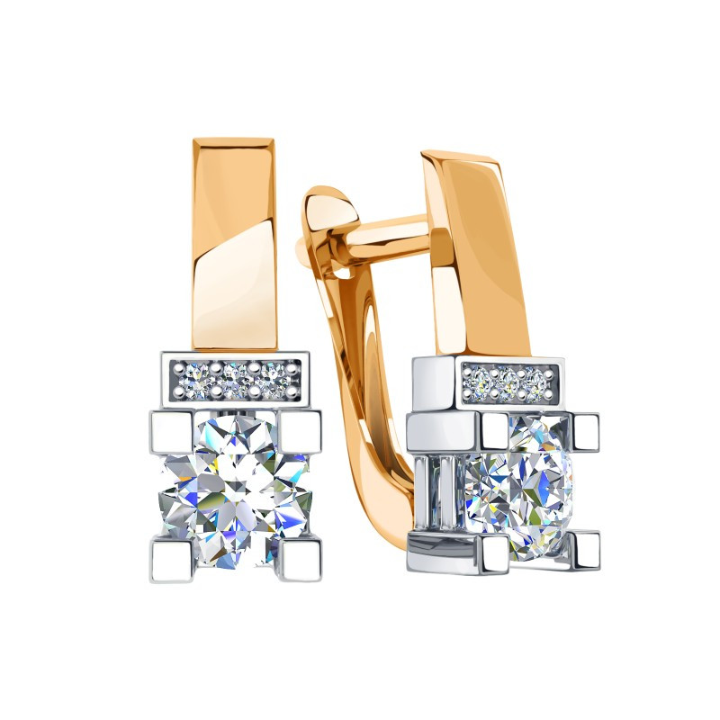 Серьги из комбинированного золота с фианитами