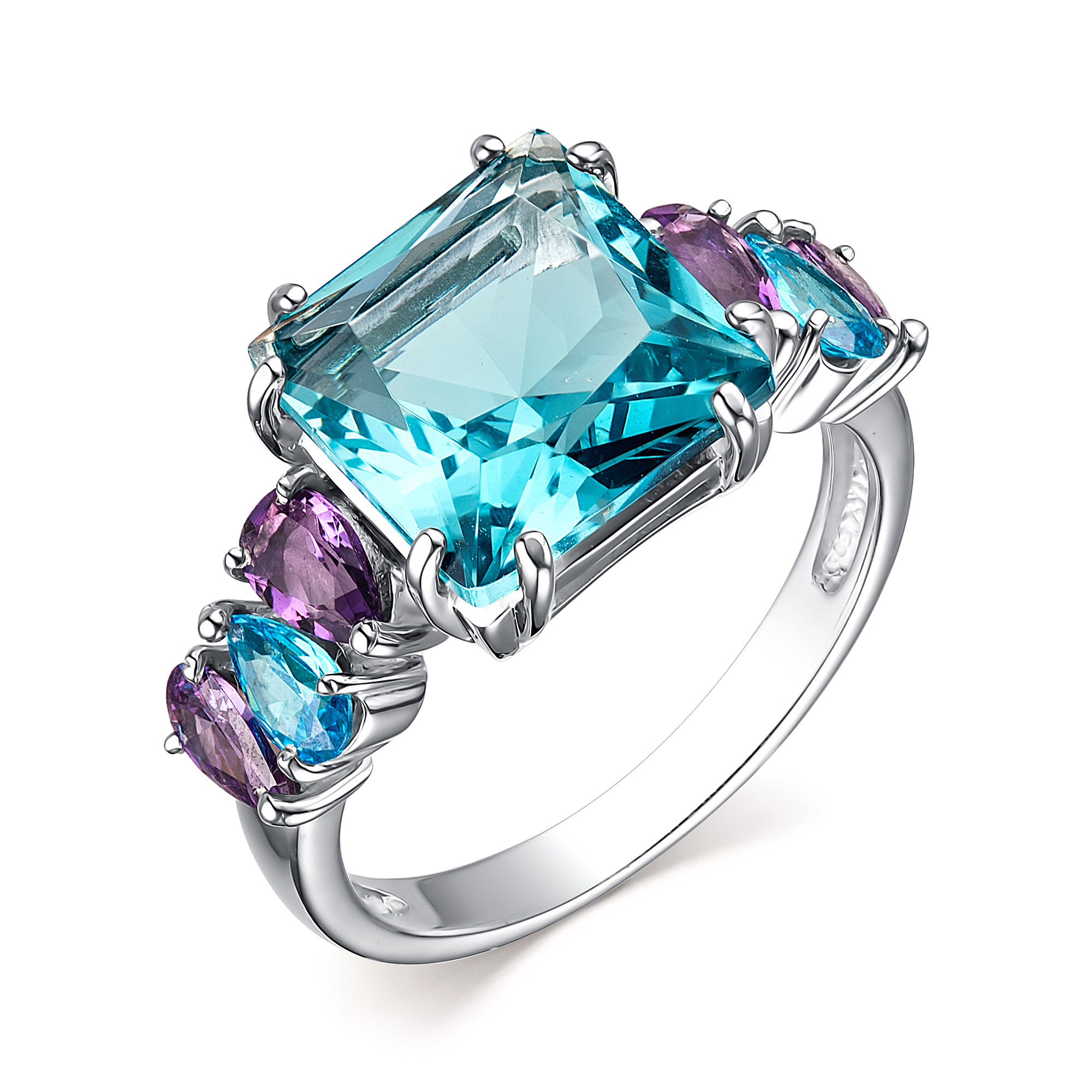 Кольцо из серебра с топазом и фианитами 125465