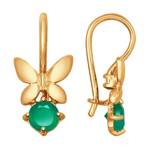 Серьги из красного золота с зеленым агатом 125554