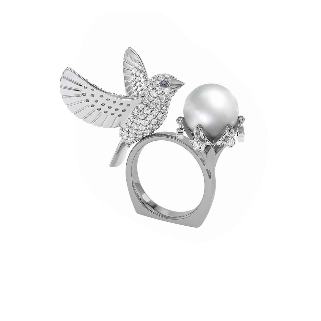 Кольцо из серебра с жемчугом и фианитами