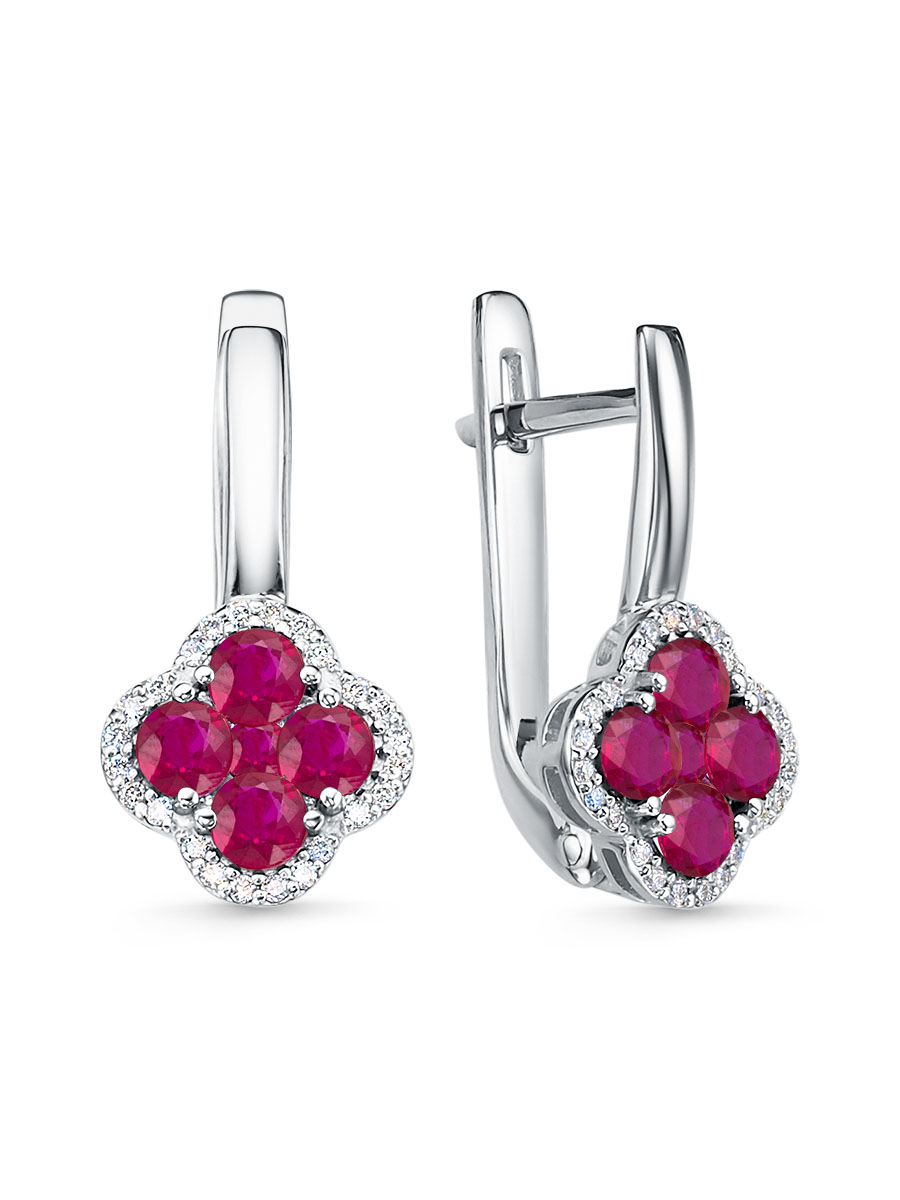 Серьги из белого золота с рубинами и бриллиантами