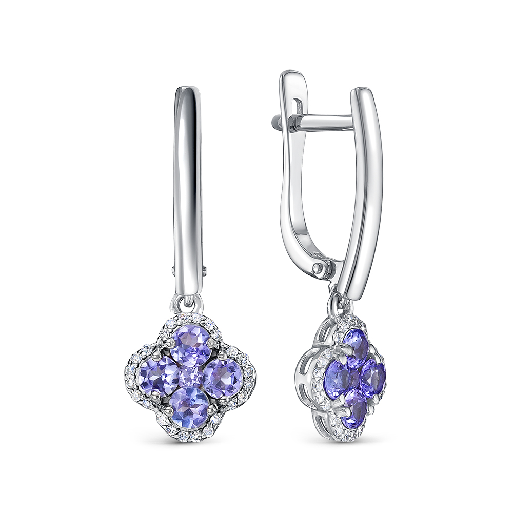 Серьги из белого золота с танзанитом и бриллиантами