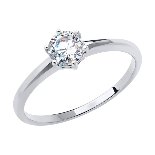 Кольцо помолвочное из белого золота с фианитом