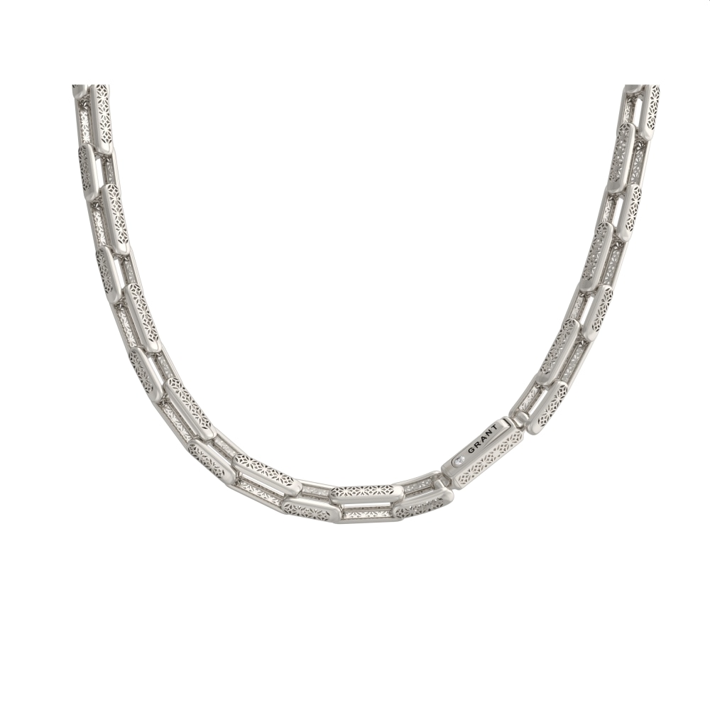 Цепь из белого золота с бриллиантами, фантазийное плетение