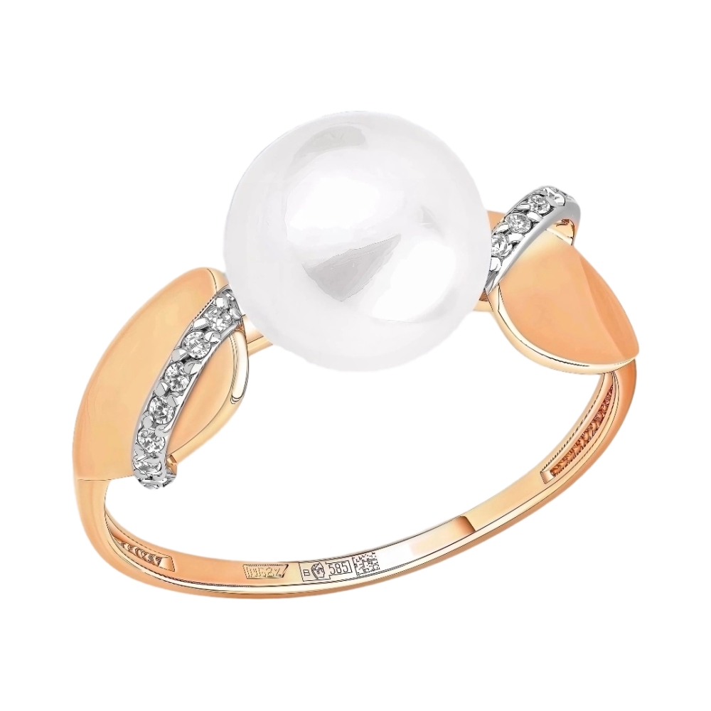 Кольцо из красного золота с жемчугом и фианитами 132536