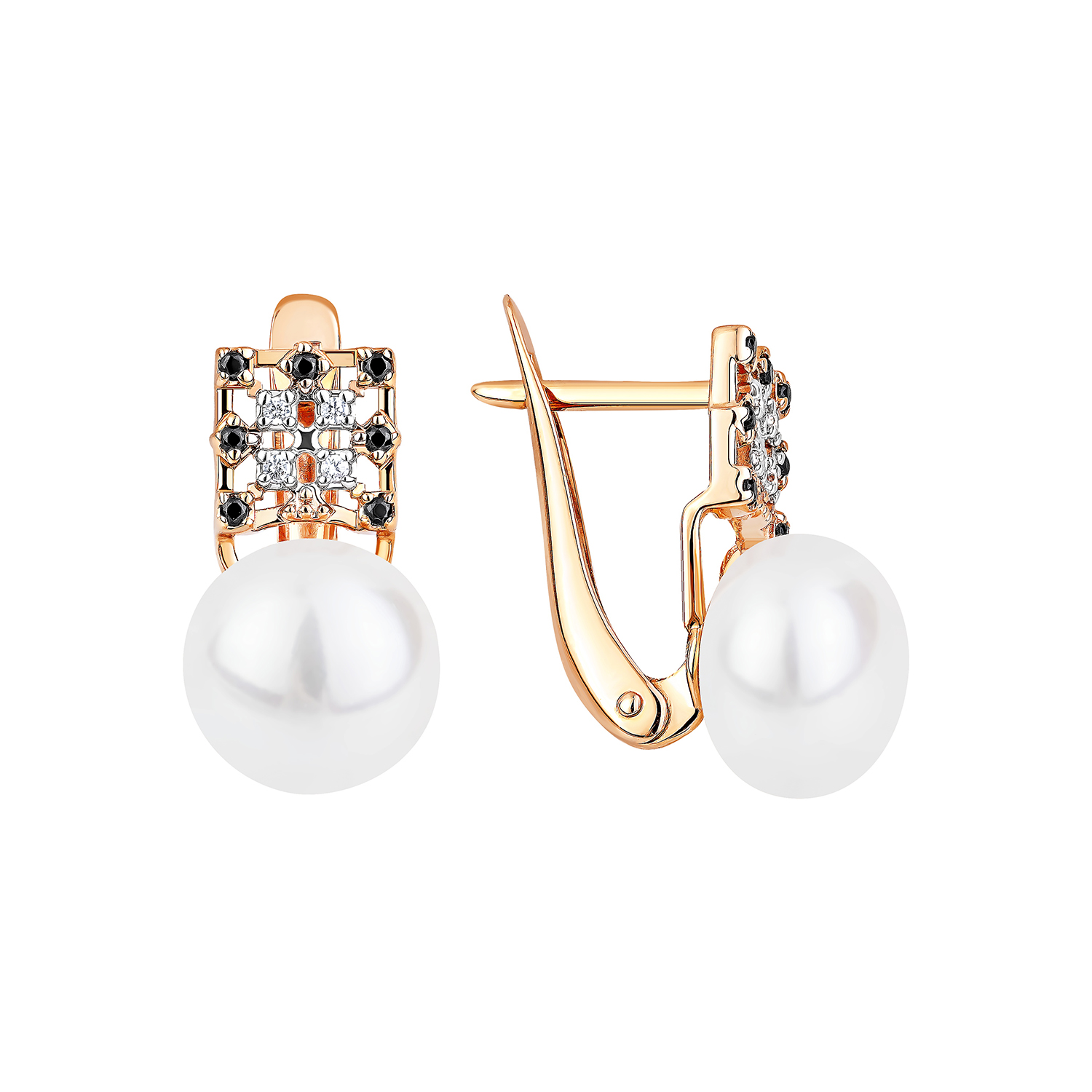 [NAME] => Серьги из красного золота с жемчугом и фианитами