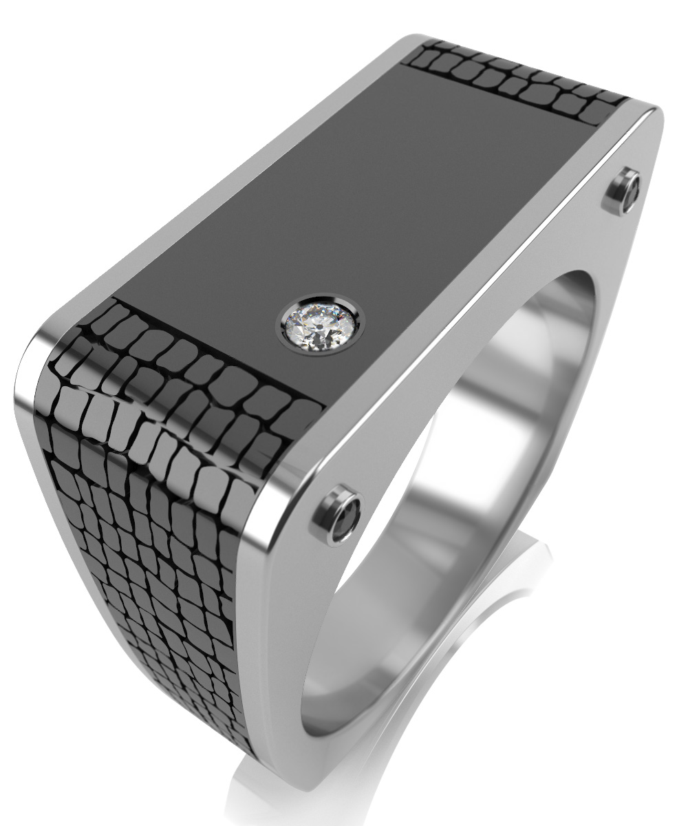 Печатка мужская из серебра с керамикой и фианитом