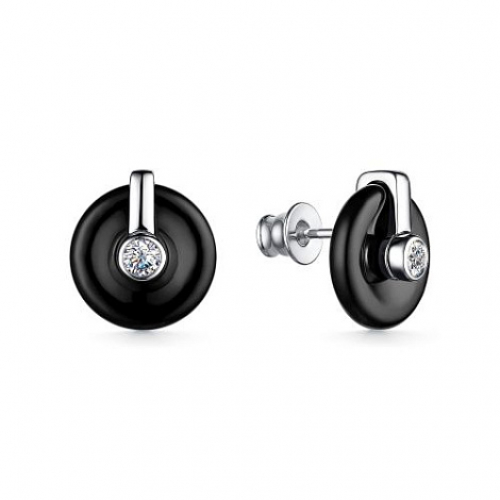 Серьги из серебра с черным ониксом и фианитами 134745