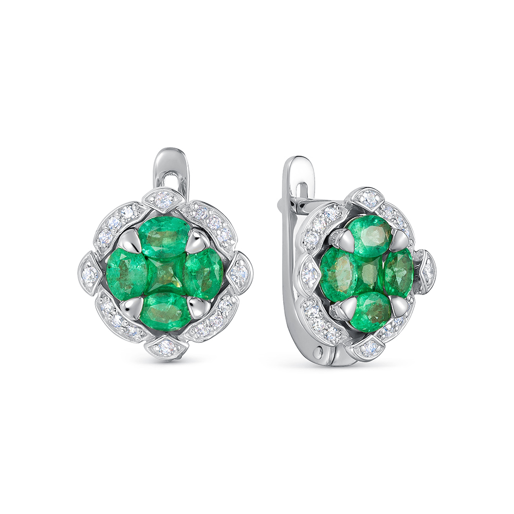 Серьги из белого золота с изумрудами и бриллиантами