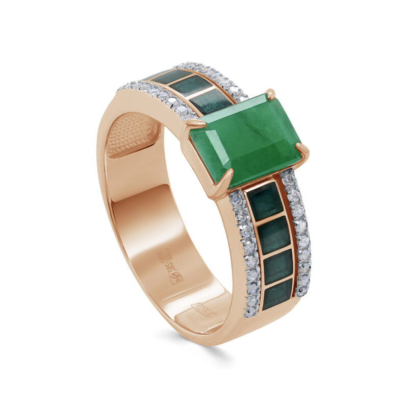 Кольцо из красного золота с изумрудом и бриллиантами 134827