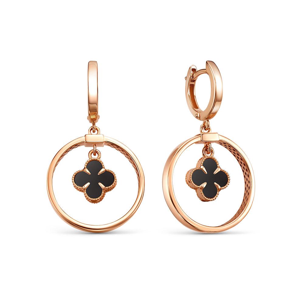 Серьги из красного золота с ониксом