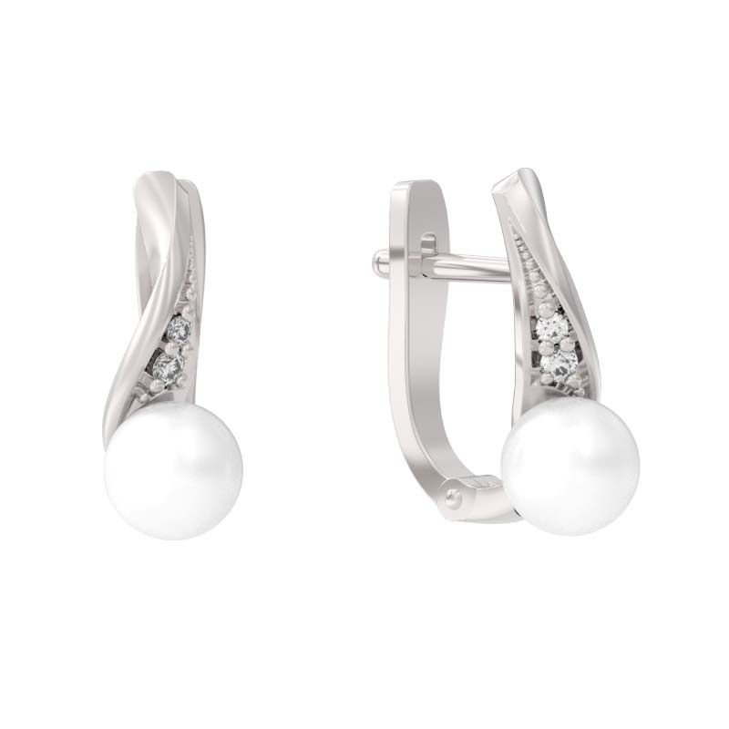 Серьги из серебра с фианитами и жемчугом
