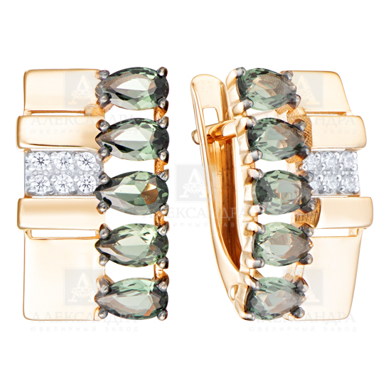 Серьги из красного золота с раух топазами и фианитами 140027