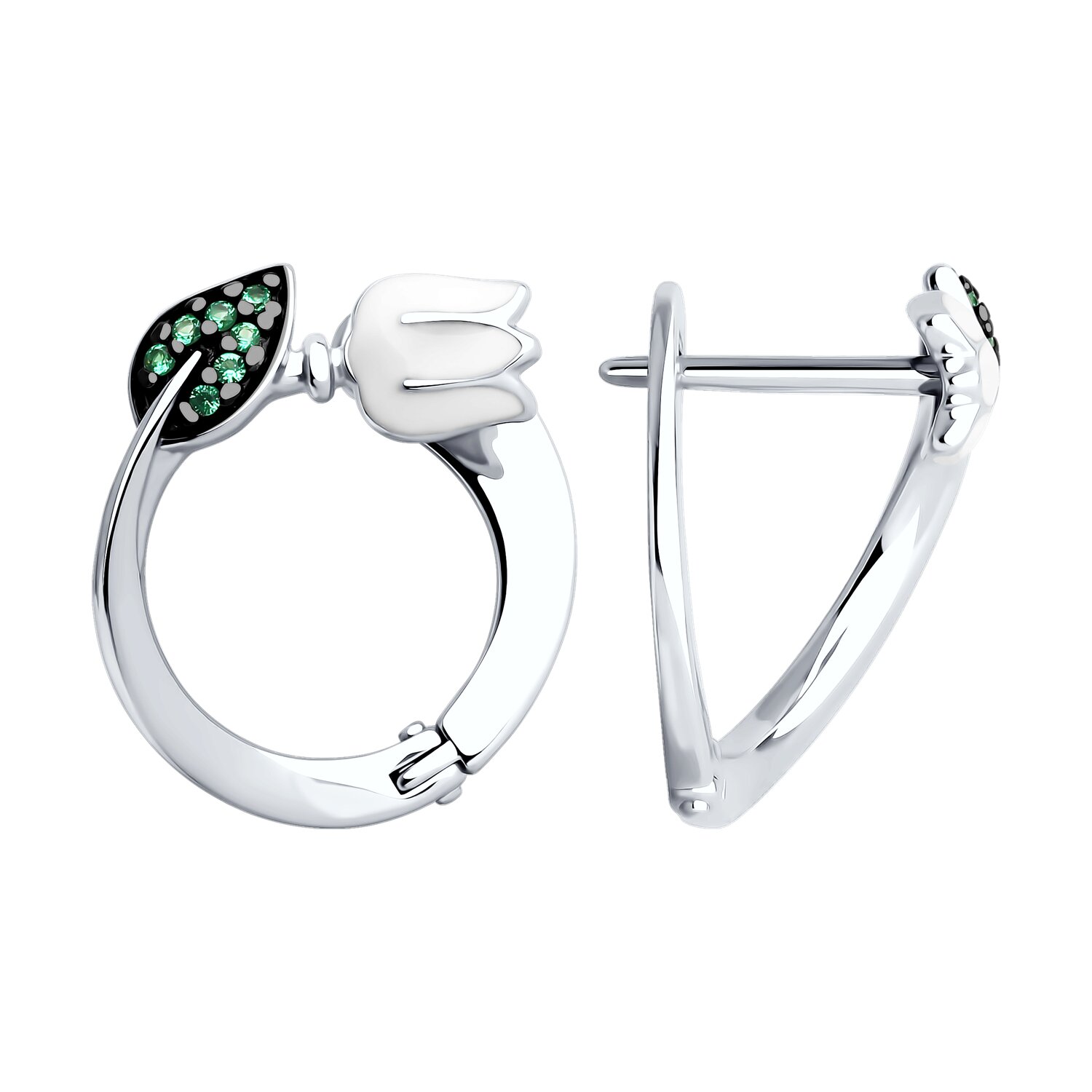 Серьги из серебра с фианитами и эмалью