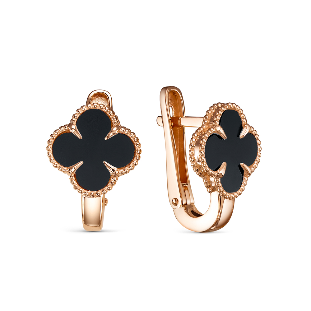 Серьги из красного золота с ониксами