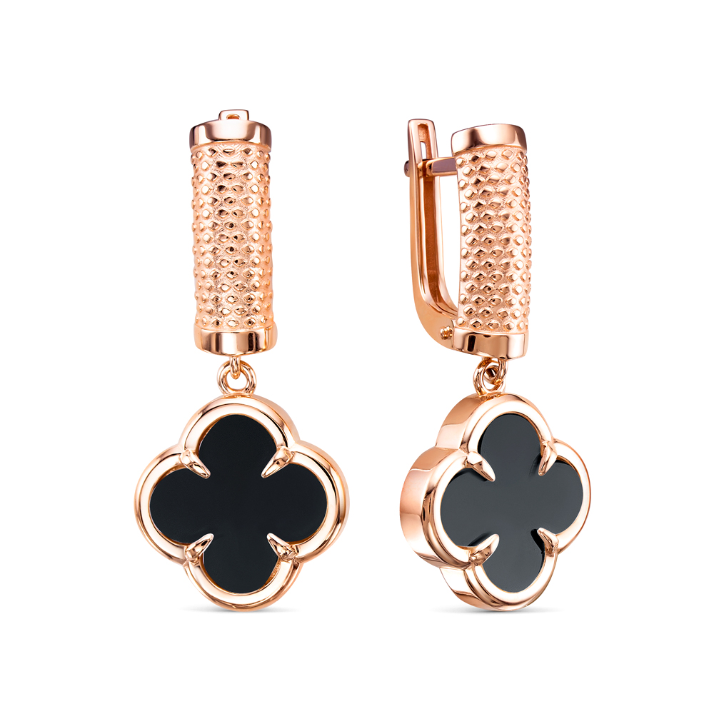 Серьги из красного золота с ониксом
