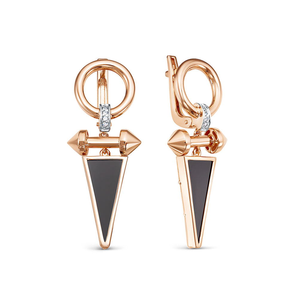 Серьги из красного золота с ониксом и фианитами