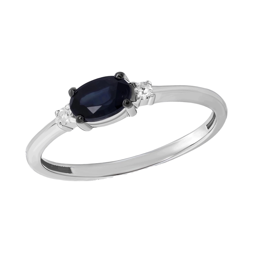 Кольцо из белого золота с бриллиантами и сапфиром