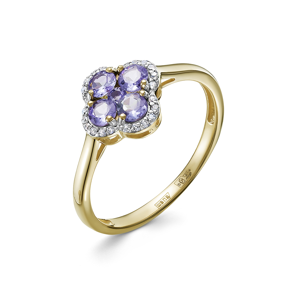 Кольцо из желтого золота с танзанитом и бриллиантами