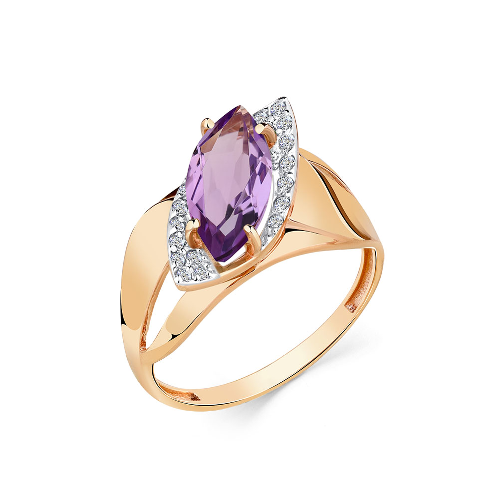 Кольцо из красного золота с аметистом и фианитами